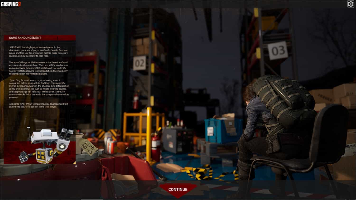 《喘息2》一款单人生存游戏,一个危险和荒废的游戏世界中只有你和你的伙伴,如果你能忍受孤独,那就去探索吧,这需要耐心。